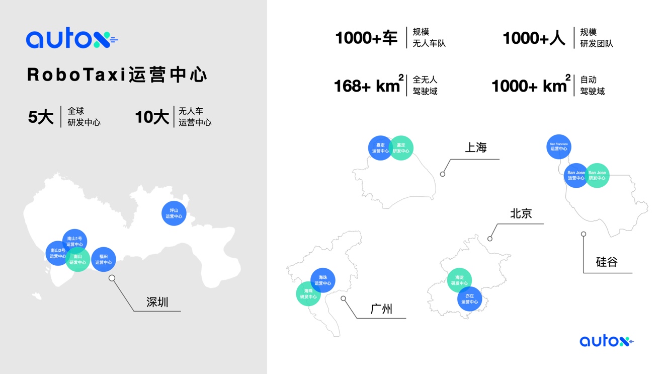 “运转高效的大型无人车运营中心网络,是规模化、标准化落地RoboTaxi的必备基础设施体系,也是AutoX继发布中国首批超1000台规模自动驾驶车队之后,扎实落地的坚实一步。”AutoX发言人表示。