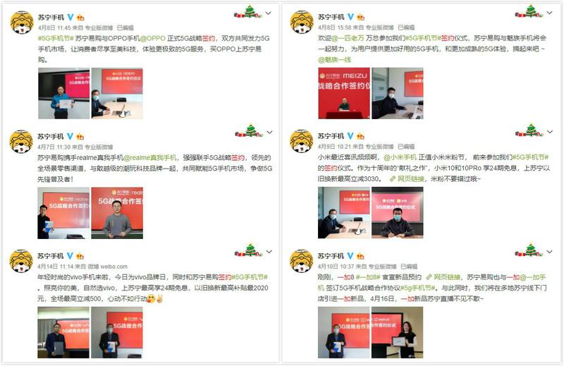 特殊时期,一支5G盟军迅速组建,围绕全国首个5G手机节,全面发力。3月24日,工信部下发通知,要求促进5G终端消费,加快用户向5G迁移。苏宁率先响应号召,联合三大运营商以及各大品牌厂商,启动5G手机节,华为、小米、vivo、OPPO、一加、Realme等国内主流手机品牌全面参与,并且集中与苏宁签署5G战略合作协议。