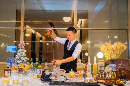 酒店大堂的威士忌酒廊,作为一个开放的社交空间,是水晶未来的特色产品,也是重点打造的客户体验之一。到场的加盟商们也在品鉴会期间,亲身感受了水晶特色威士忌带来的精彩体验。
