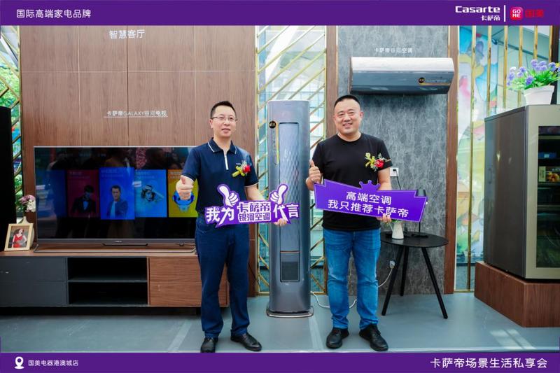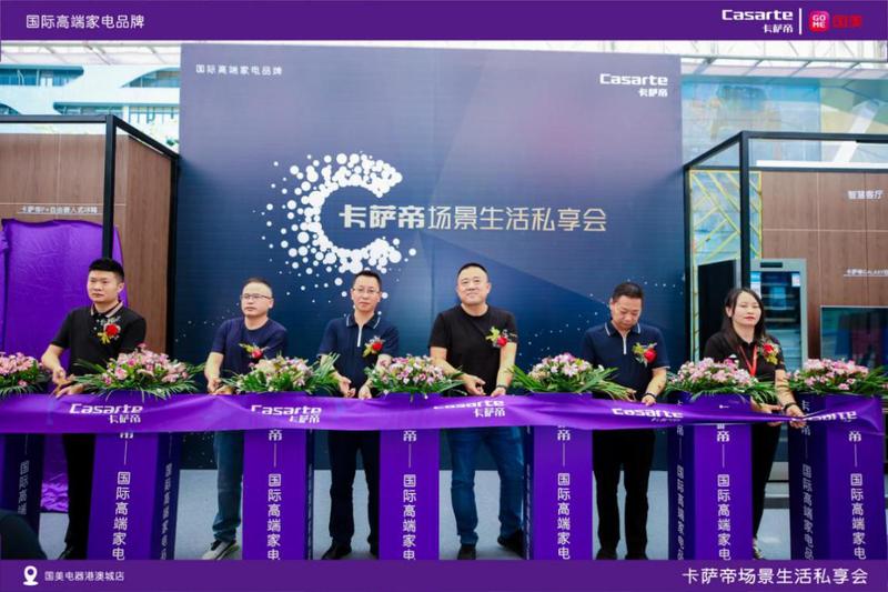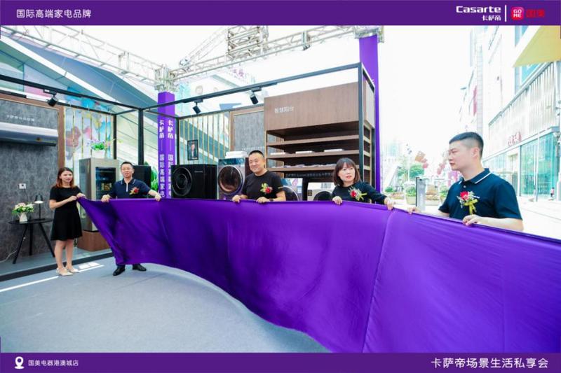 随后,国美零售深圳区域总经理王炎、海尔智家深圳分公司总经理王晓强、国美零售深圳区域采购总监罗彧、海尔智家深圳分公司全网总监夏英勇、海尔智家深圳分公司营销总监孙勃和国美电器港澳城店店长付永红上台,共同完成了卡萨帝场景生活私享会的启动仪式。