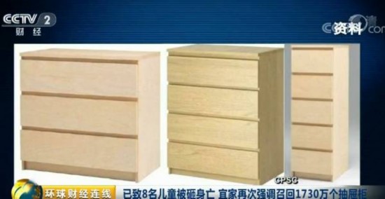 近日,宜家在北美地区召回1730万件抽屉柜。在中国市场上,同样款式的宜家产品仍在销售,宜家并没有召回的计划。