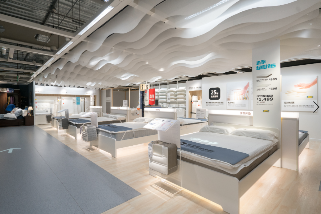 在床垫挑选区,宜家专门设计了一个床垫的“沉浸式”体验室,可以让顾客全身心放松地感受宜家床垫。