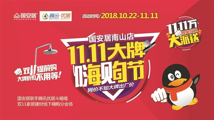 10月22日,“国安居南山店&腾讯优居双11大牌嗨购节”在国安居南山店四楼火热启动!