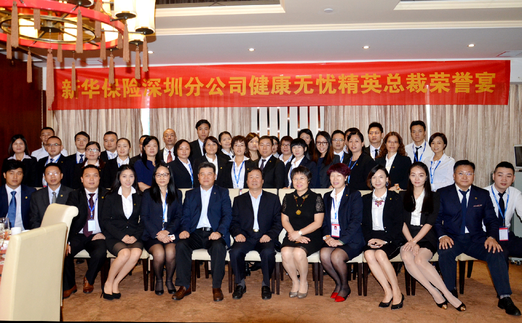 2015年11月9日,新华深分举办“健康无忧”精英总裁荣誉宴。万峰总裁、李源总裁助理、杨红梅总经理及相关领导出席活动,“健康无忧”活动竞赛中“十全十美”达成人员、个人FYC前20、部门活动率前10,营销渠道准总监,银代和保费渠道业务精英参加。在8月28日至10月31日全系统开展的“健康无忧”活动竞赛中,新华深分达成速度和达成率居全系统第一。