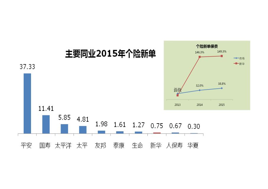 市场排名:2012-2015年,新华深分个险新单保费年均增长率62%,市场同期增长率为22%,位列深圳市场第八。