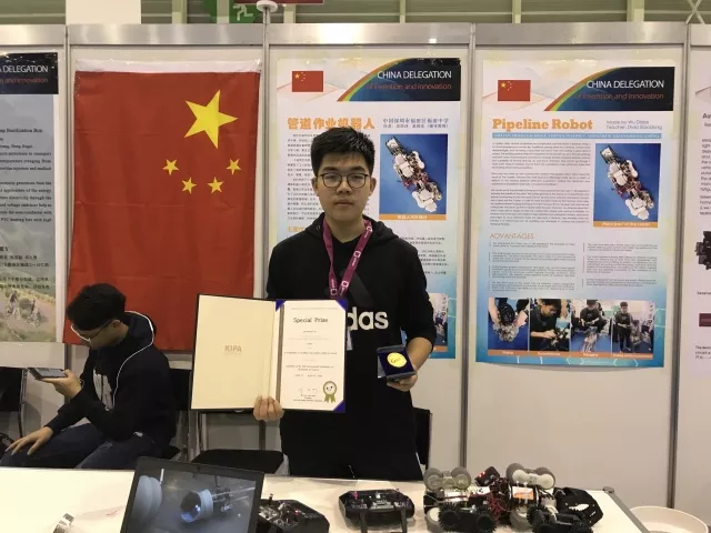 “第69届德国纽伦堡国际发明展”银奖和“第十届世界创意节”金奖获得者王楷迪(中)