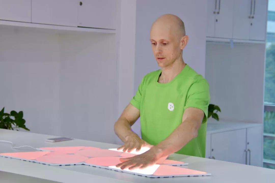 目前,Tomas Rodinger是Nanoleaf的首席技术官,也是联合创始人之一。记者见到他时,腼腆的他正在摆满试验仪器的办公室里,带着产品开发人员一丝不苟地测试产品,他们的主要产品线是智能模块化LED照明灯板。