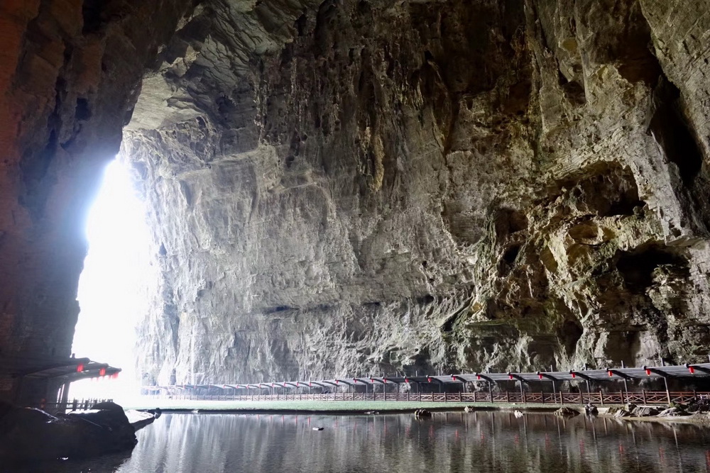 旱洞全长59.8公里,洞口高74米,宽64米,洞内最高处235米,总面积200多万平方米。李仁奇 摄