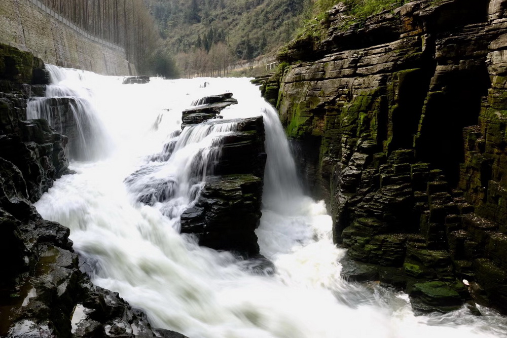 洞中景观千姿百态,神秘莫测。水洞口的卧龙吞江瀑布落差20余米,吼声如雷,气势磅礴。李仁奇 摄