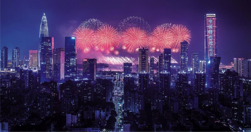 国庆70周年深圳湾焰火晚会:晚会以深圳湾人才公园的山、海、湖及城市建筑群为代表的城市实景作为广阔舞台,分为序曲及五个篇章进行表演,为伟大的新中国70华诞祝贺,为祖国史诗般的进步礼赞。当晚共发射16万发烟花,内容编排突出中国气派、深圳特色。