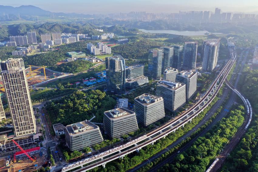 西丽湖国际科教城地处粤港澳⼤湾区和⼴深港澳科技创新⾛廊的重要节点,具有“贯通南北、协同东⻄”的优势。它 向南可以串联起深圳⾼新区、深港科技创新合作区等,向北打通光明、东莞等制造产业化重镇,有利于在空间布局上 打通⼴深港澳科技创新轴,实现创新轴上⼈才流、货物流、信息流、资⾦流的加速涌动。⾼标准规划、⾼起点建设⻄ 丽湖国际科教城,对于助⼒粤港澳⼤湾区的建设具有重要的战略意义。