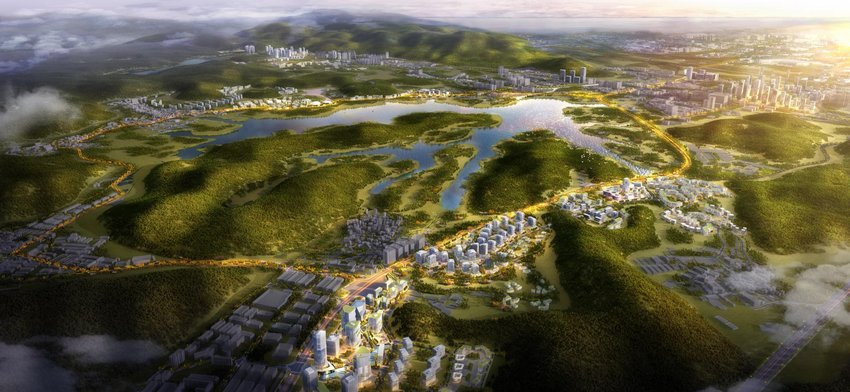 西丽湖国际科教城核心区地处广深港澳科技创新走廊的核心战略节点。其以西丽湖为生态心,交通走廊为发展驱动轴,大学城科教提升区为发展基础,石壁龙科教拓展区为增长极,西丽中心创新服务区为综合服务平台,形成“一心、两轴、三区”的整体空间布局。集中布局高等院校、科研院所、创客空间、科技小镇等新型空间,促进城市绿道和生态连廊互联互通,打造教育、科研、产业、生态融合发展高地。