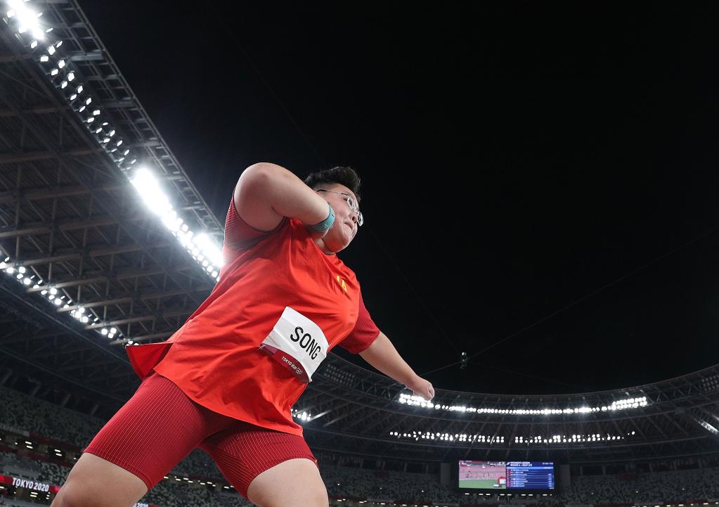 7月30日,中国选手宋佳媛在女子铅球资格赛中。新华社记者李明摄
