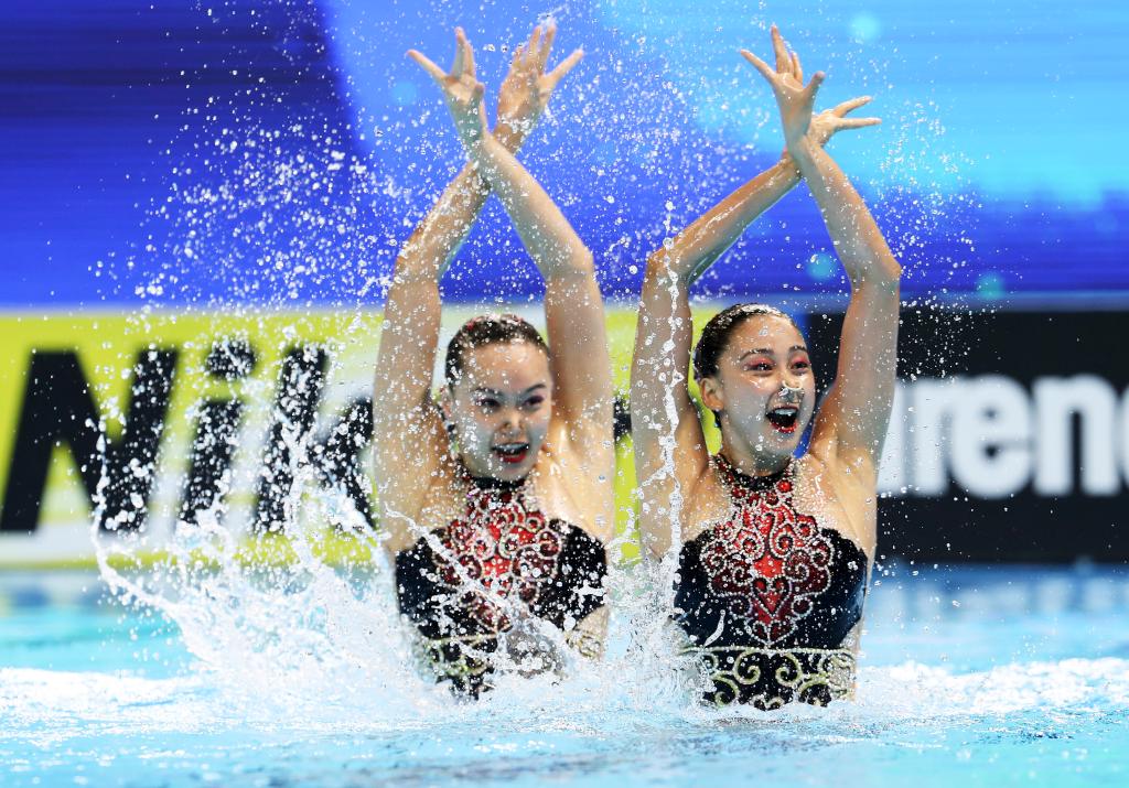 2019年,光州游泳世锦赛,黄雪辰/孙文雁(右)获得双人比赛亚军。新华社记者李钢摄