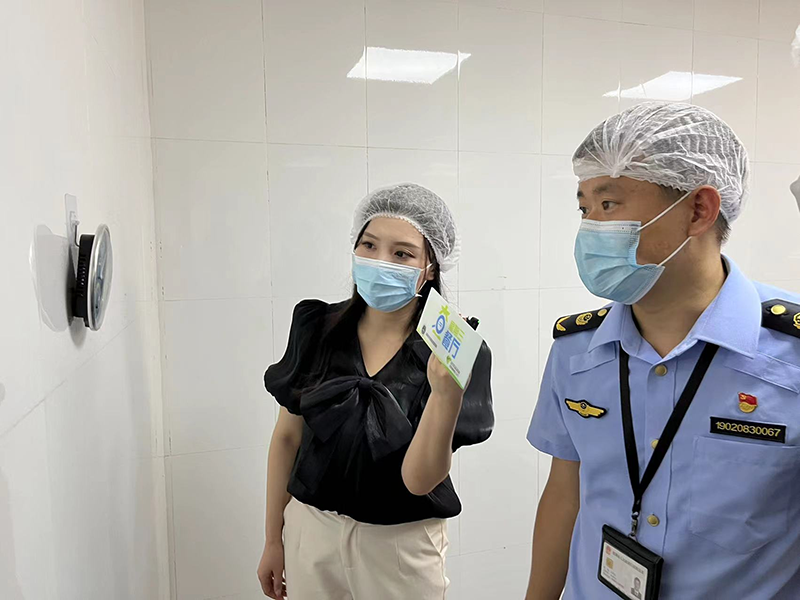 执法人员查看仓库温度湿度