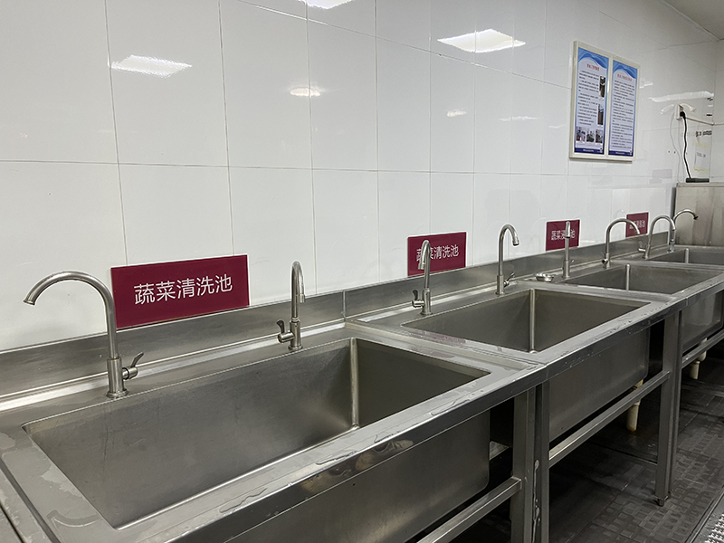 加工区域的清洗池张贴了标签,不同食材分池清洗