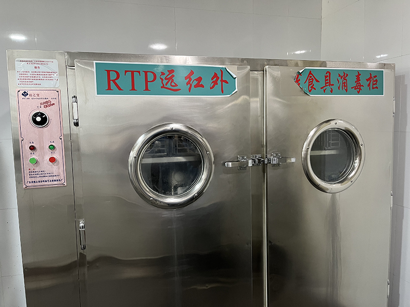 在清洁间,吴巍伟向执法人员介绍道,食堂的餐具清洁主要采取热力消毒方式。执法人员指出该方式比化学消毒更加安全有效,是更为推荐的餐具消毒方式。
