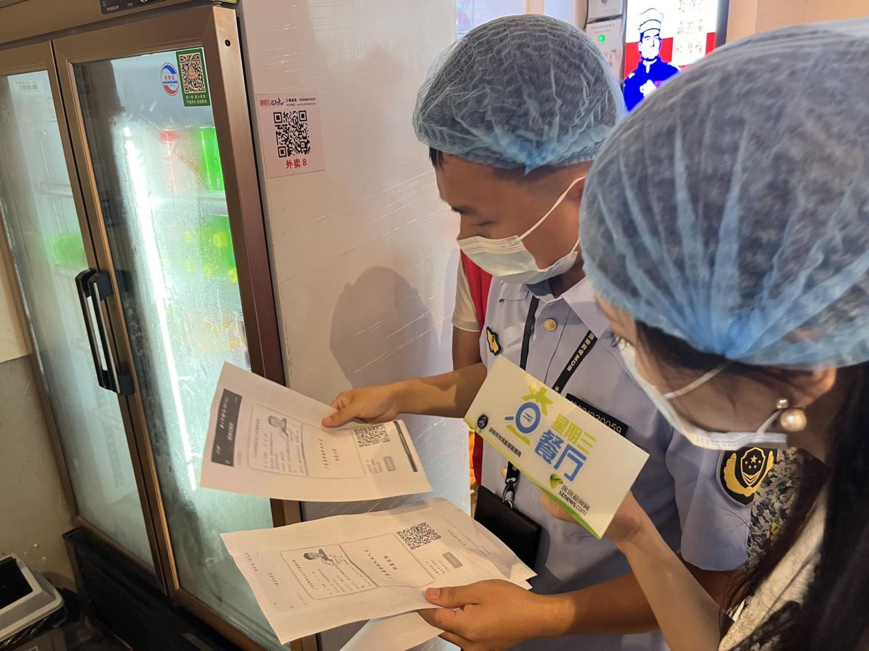 执法人员对从业人员健康证、供应商资质、进货凭证等资料进行检查。