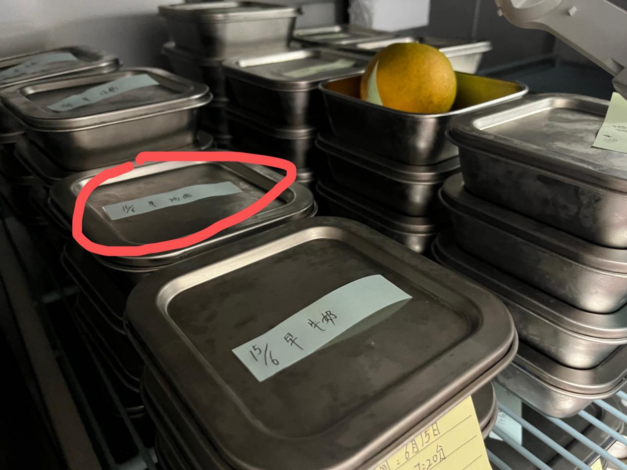 在留样间,执法人员指出,一盒样品的标注日期为6月16日,出现日期提前的情况,需尽快整改。