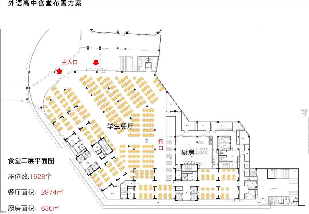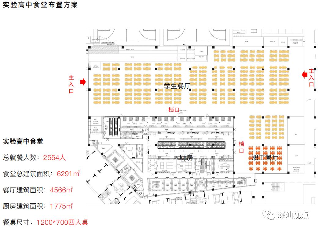 同时,在架空层大巴接驳区开通食堂通道,设置对家长开放的就餐区。