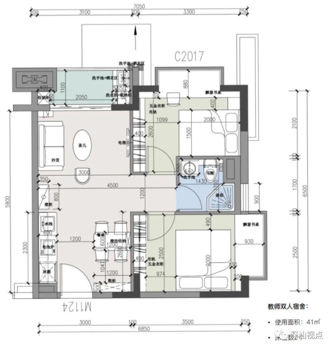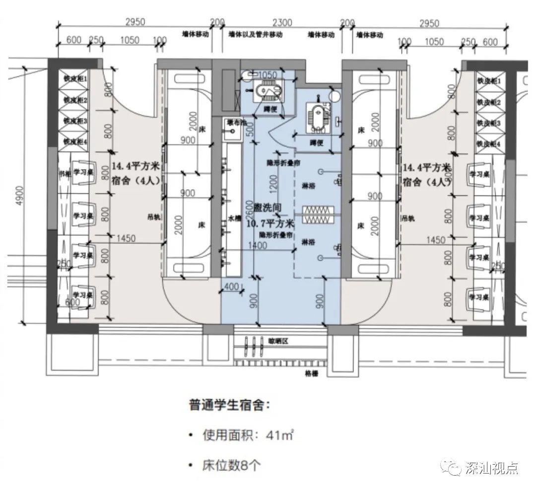 教师宿舍楼3栋,包括540套使用面积21平米的单人间,108套使用面积42平米的双人间。