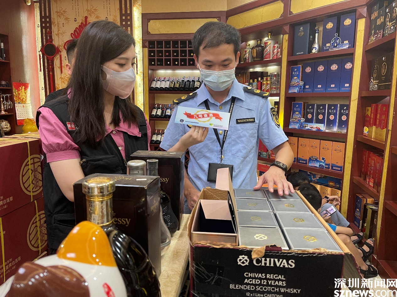 随后,执法人员又在店内清出数十瓶无中文标签酒水,并要求该店负责人出示相关进货票据及进口凭证,负责人无法提供。执法人员随即对涉案酒水进行数量清点,并对该商户开具了执法文书。