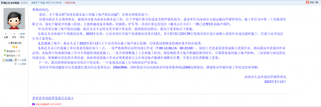 您好,关于您反映“深南东路东延工程施工噪声扰民问题”,具体办理情况如下: