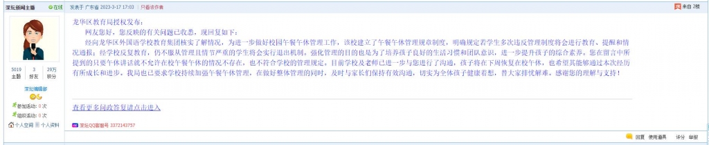 13、帖文《龙华外国语学校不让孩子在学校午休》