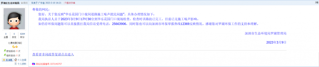 2、帖文《罗湖华乐花园夜间施工震耳欲聋》