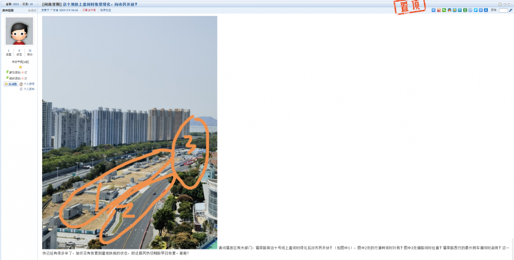 5、帖文《这个地铁上盖何时恢复绿化,向市民开放?》