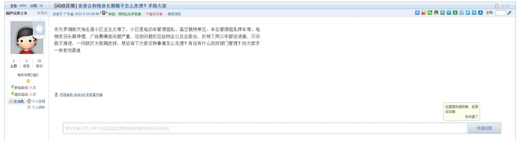 各职能单位如需对网友反映的问题进行回应,可在深圳论坛注册官方账号并通过认证,回帖进行回应,也可通过客服QQ以及热线电话,委托深圳论坛代为回应。