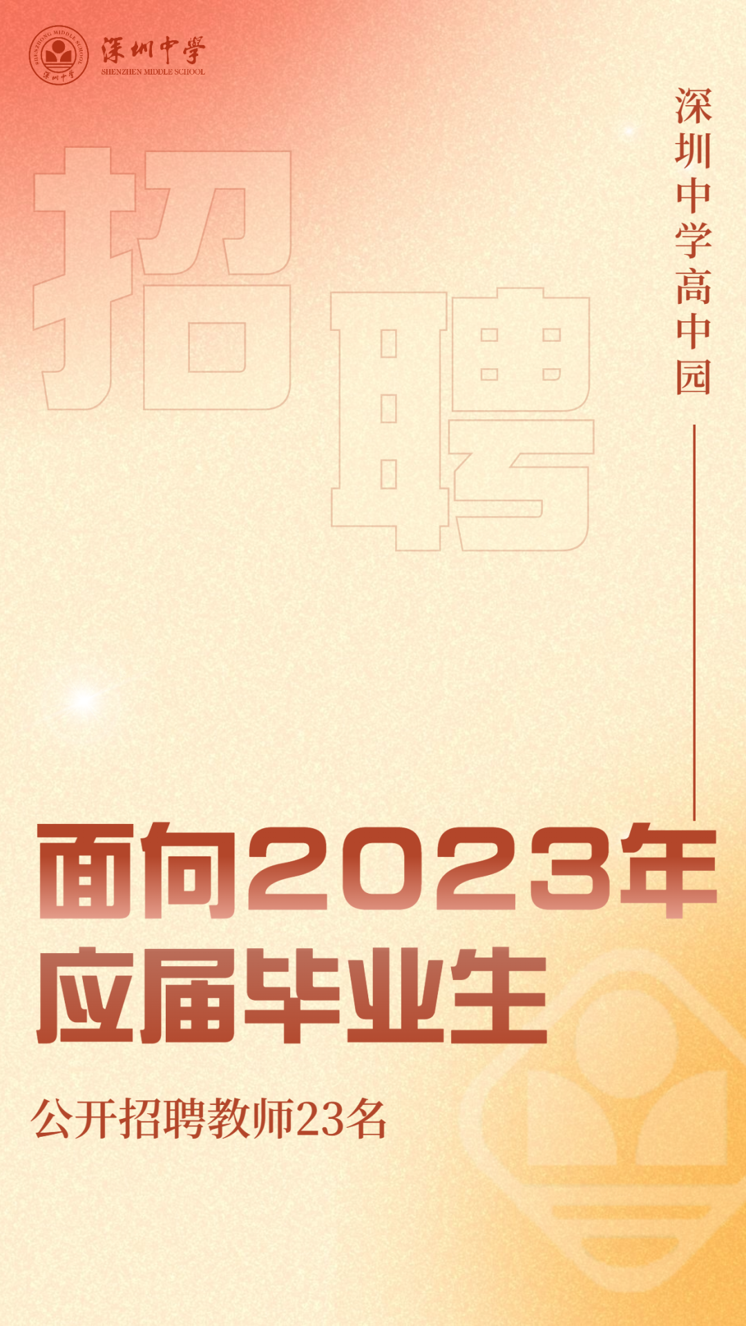 为确保2023年9月开学的教育教学需求,高中园面向2023年应届毕业生公开招聘教师23名。现就有关事项公告如下: