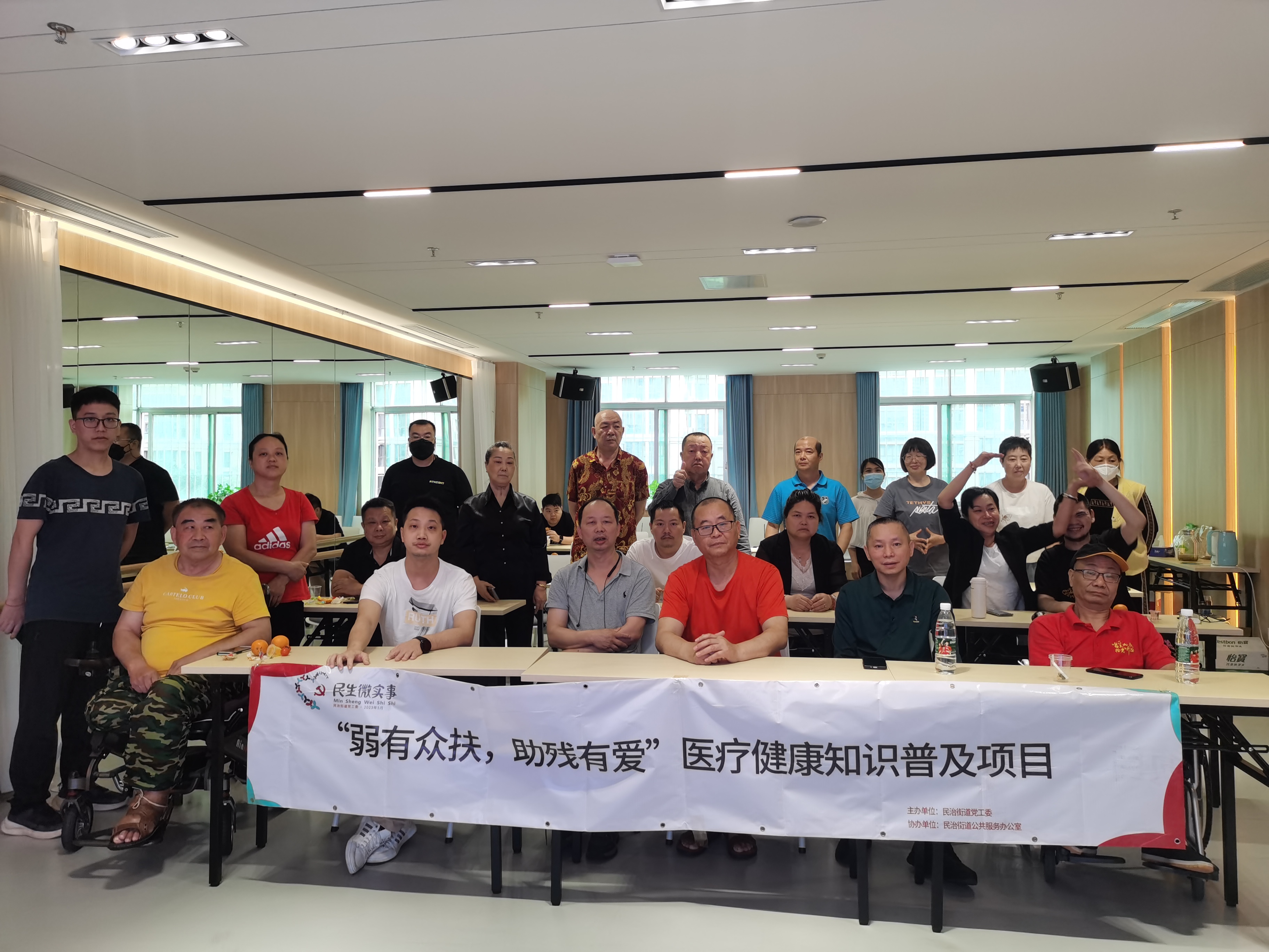 深圳新闻网2023年5月11日讯 2023年4月至5月期间,由龙华区民治街道党工委主办,民治街道公共服务办公室(残联)协办的民生微实事项目—“弱有众扶,助残有爱”医疗健康知识普及项目活动在民治职康中心四楼培训室顺利开展,活动包括对内分泌系统、神经系统常见病的预防与照护、健康心理与知识竞赛进行详细讲解,辖区内残障朋友、职康会员、社区专职委员累计90余人次参加了本次活动。