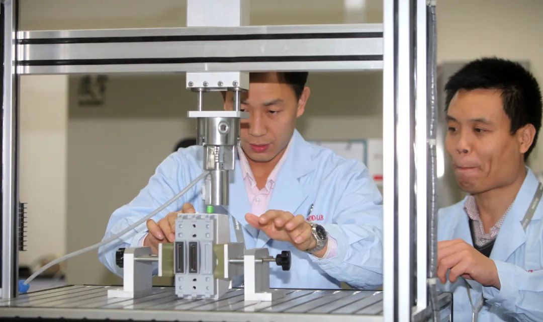 深圳迈瑞生物医疗电子股份有限公司产品涵盖生命信息与支持、体外诊断和医学影像三大领域,在全球设有10个研发中心。图为研发人员在环境温湿度实验室对仪器进行线缆插拔寿命实验。吴铠峰 摄