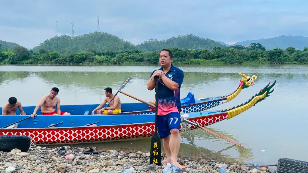 赤石镇党委委员刘德雄也在现场,刚下龙舟、手握船桨的他表示,5月20日开始,新里村组织了数十名年轻力壮的青壮年开展训练,经过持续近1个月练习,队员们水平进一步提高。他笑着补充道:“作为土生土长的新里村鲤鱼埔村小组人,鲤鱼埔村此次也派出了龙舟队伍参赛,将赛出水平、赛出友谊,争取夺锦。”