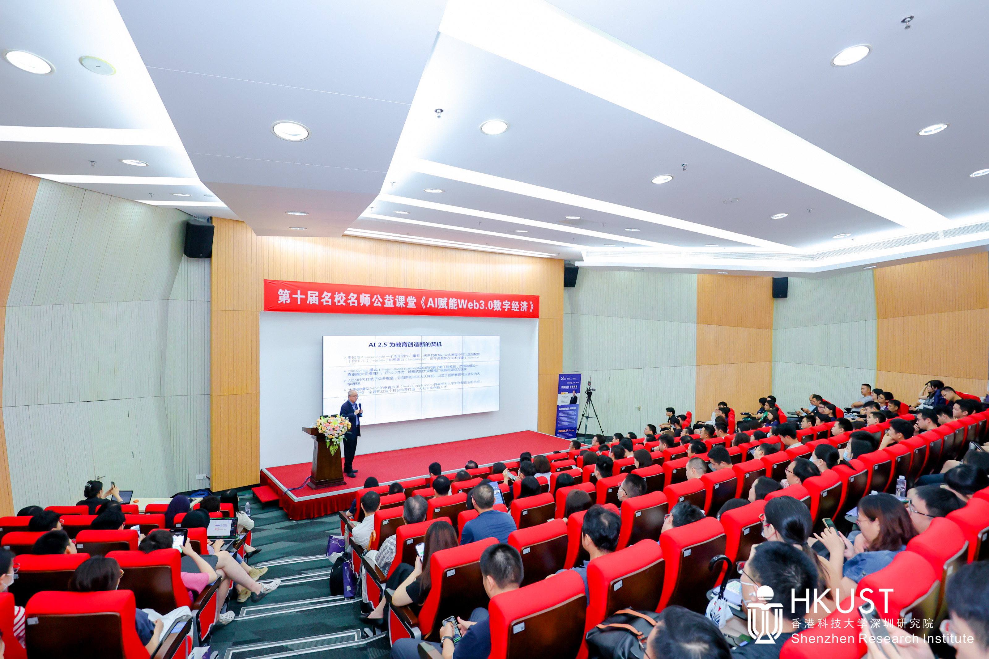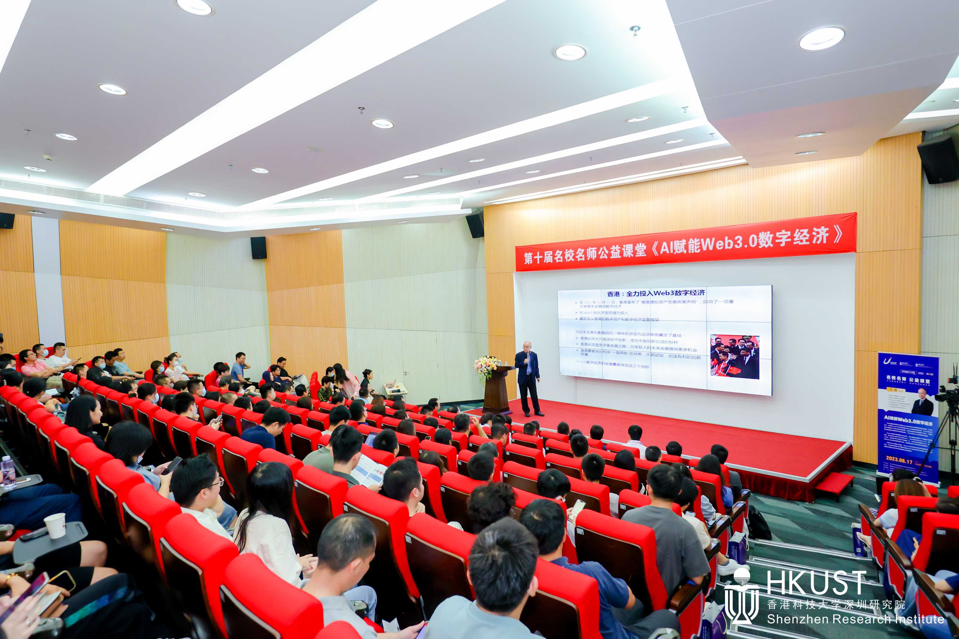 深圳新闻网2023年6月24日讯(记者 唐娜)近日,由深圳市科技创新战略研究和技术转移促进中心(深圳虚拟大学园管理服务中心)主办,香港科技大学深圳研究院承办的2023深圳虚拟大学园名校名师公益课堂第四讲在香港科技大学产学研大楼一楼报告厅举行。香港科技大学副校长(大学拓展)、香港科技大学数学系讲座教授、香港Web3.0协会首席科学顾问汪扬教授为全场近两百名观众带来了以“AI赋能Web3.0数字经济”为题的公益课堂。