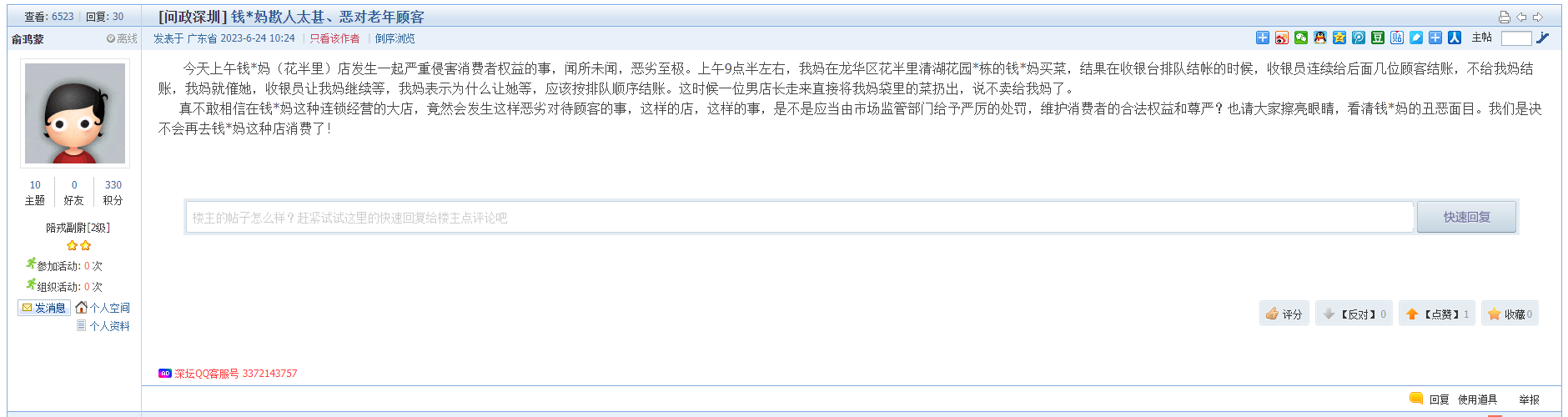 11、帖文《钱*妈歁人太甚、恶对老年顾客》