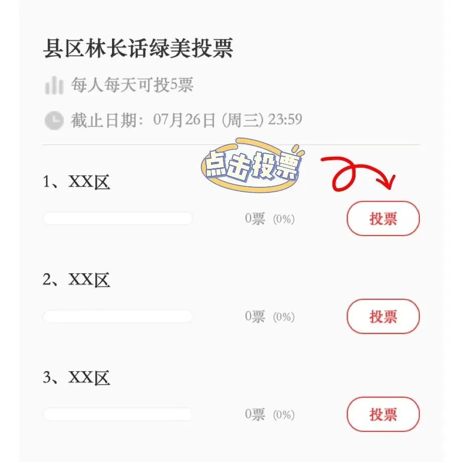 (二)每条投票链接的5个点赞数可以用于同一个县(市、区)或多个县(市、区)。