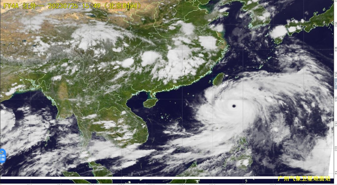 据中央气象台、广东省气象台消息,7月25日17时,超强台风“杜苏芮”位于深汕东南方向968公里的菲律宾以东洋面上,中心附近风力17级以上(62米/秒)。
