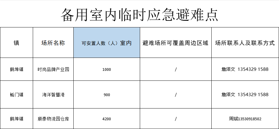 及3个备用室内应急避难场所