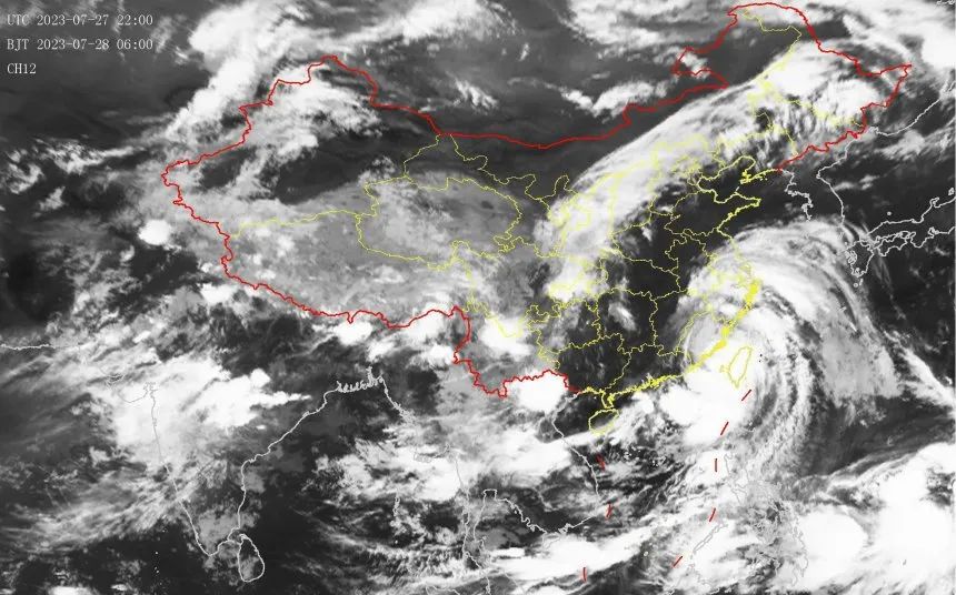 今年第5号台风“杜苏芮”(DOKSURI)(超强台风级)的中心今天(28日)早晨5时位于福建晋江南偏东方向大约160公里的台湾海峡海面上,就是北纬23.4度、东经118.9度,中心附近最大风力有16级(55米/秒),中心最低气压930百帕,七级风圈半径300-350公里,十级风圈半径100公里,十二级风圈半径50公里。