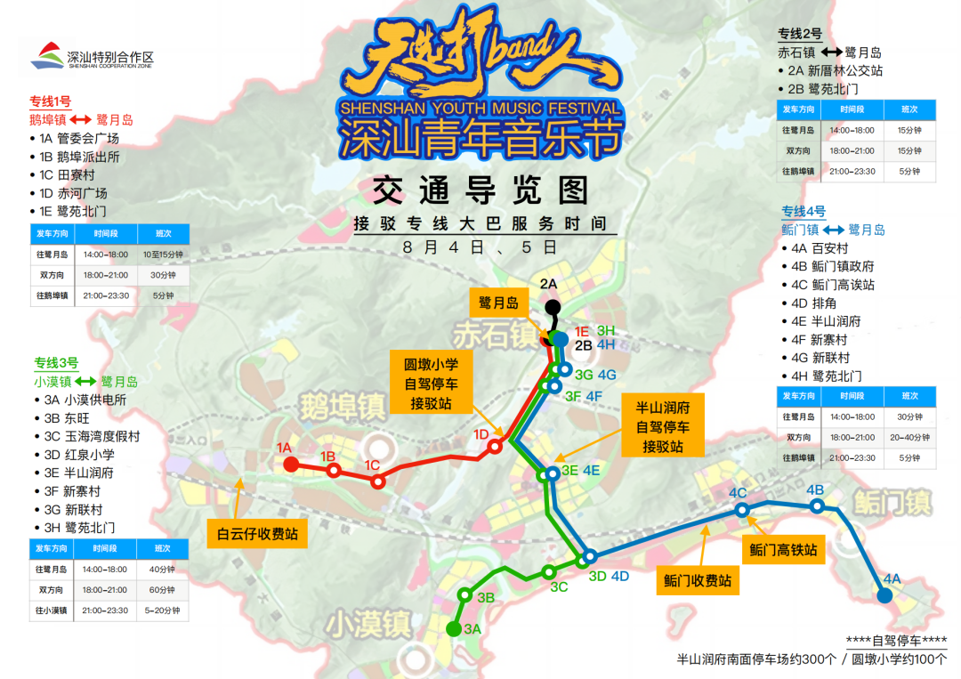 为了保障自驾观众的停车需求,此次音乐节将在深汕大道设立两个自驾+大巴接驳点,可导航到达。