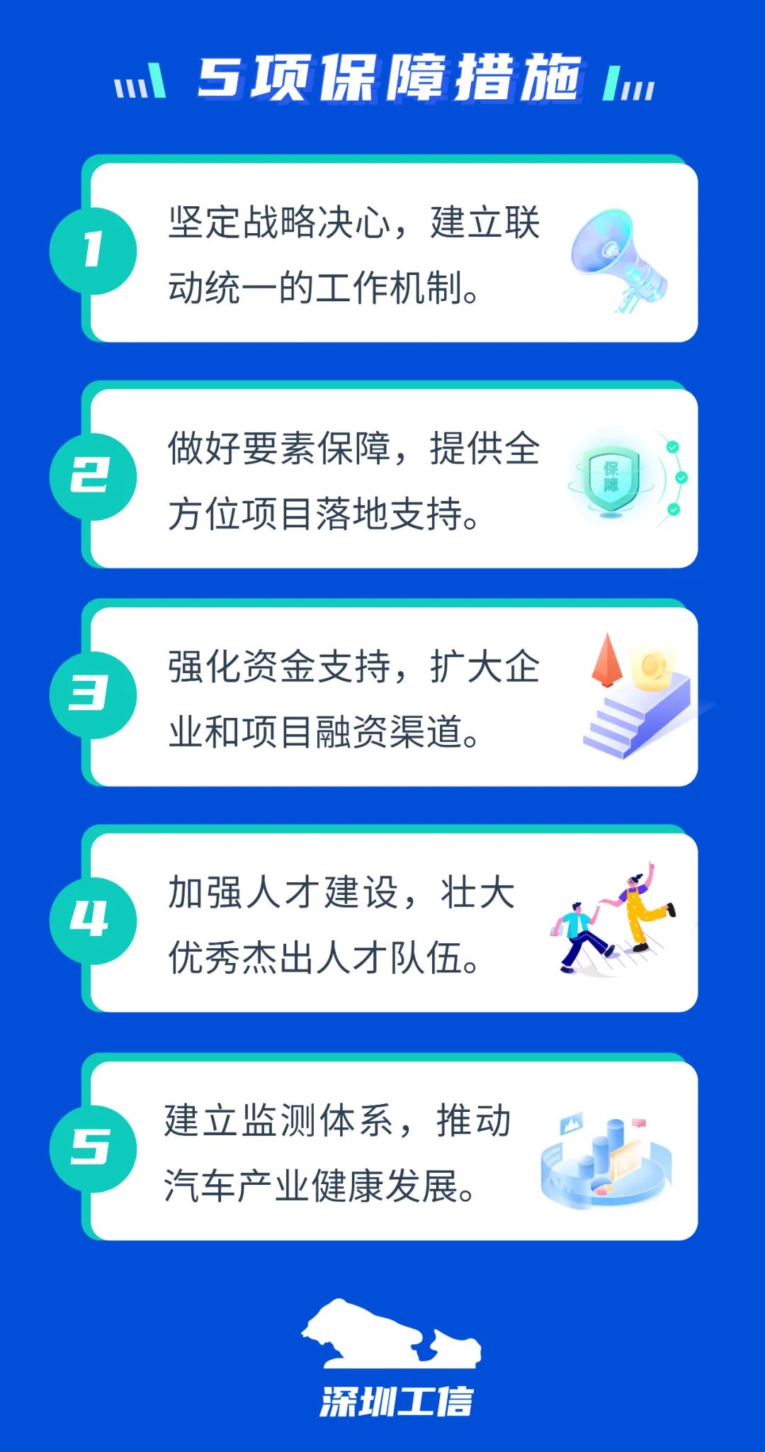 《行动计划》明确提出深圳打造“新一代世界一流汽车城”的一个总体目标、五大发展定位、十项重点工程以及五大保障措施。