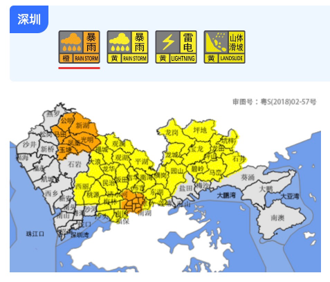 深圳市分区暴雨黄色预警信号
