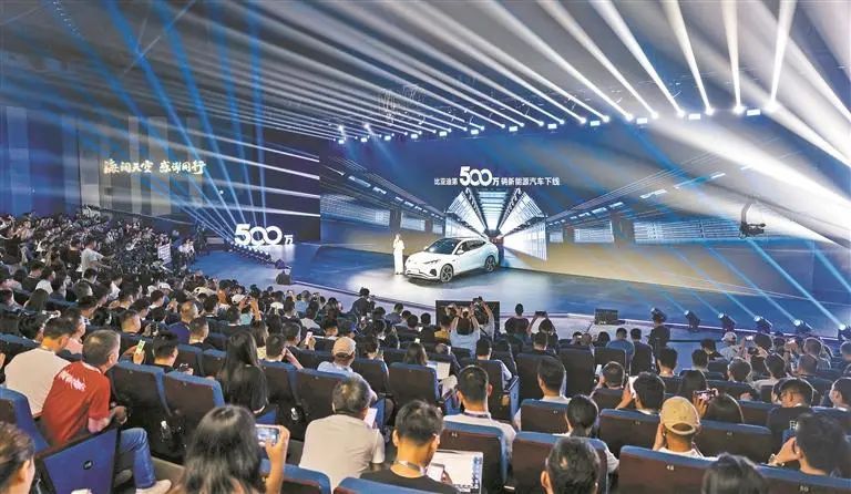 昨日,比亚迪第500万辆新能源汽车正式下线。深圳特区报记者 任宪平 摄
