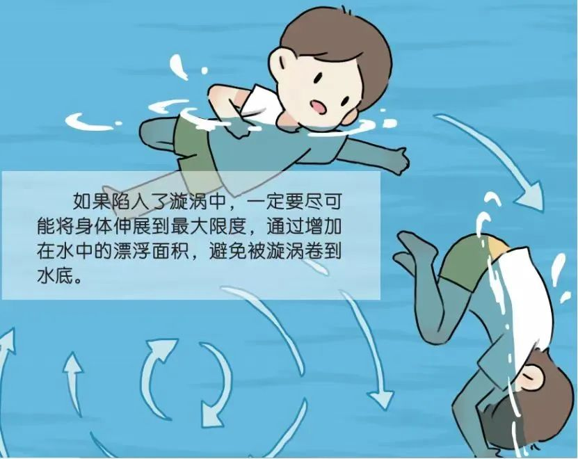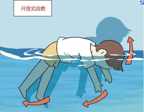 全身放松,人向后仰,将除面部之外的身体全部没入水中,四肢左右摆动划水,缓慢呼气带动身体上浮,并伺机求救。