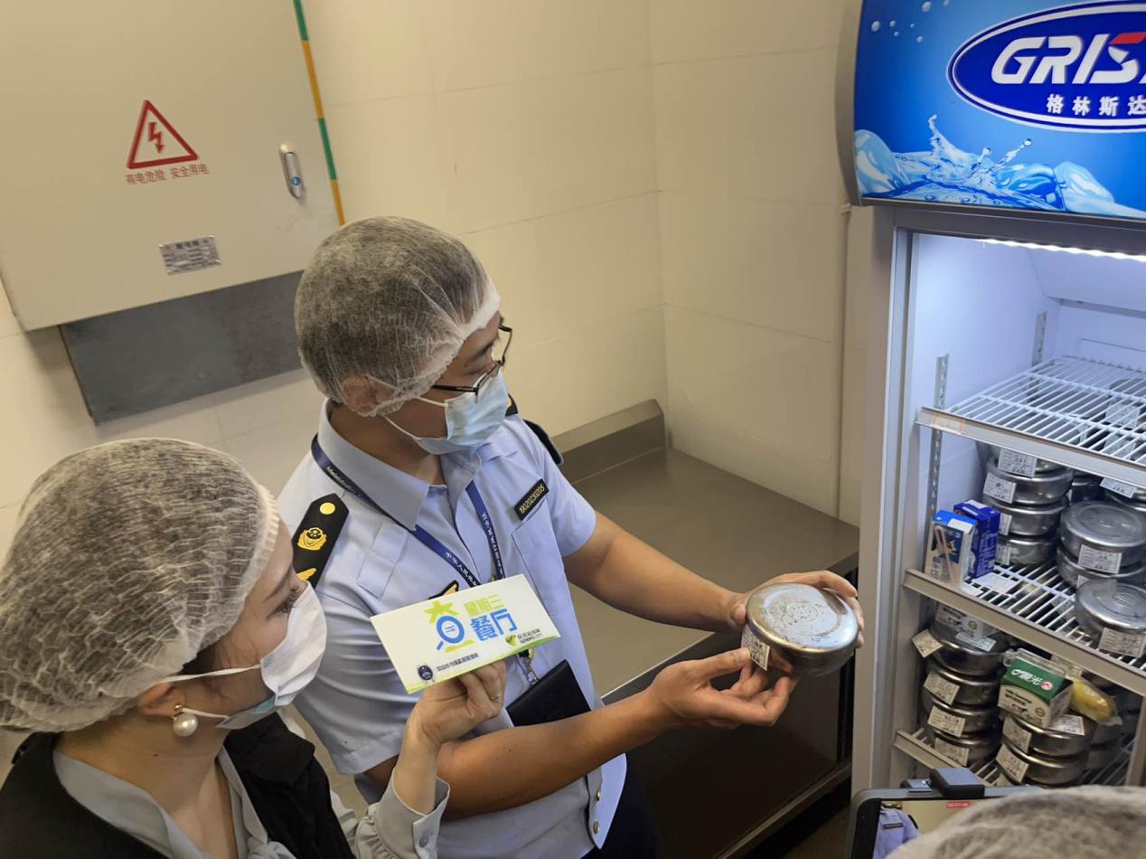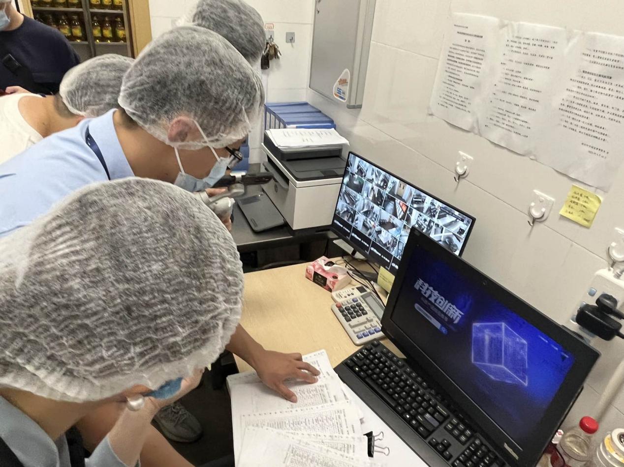随后,执法人员一行进入食堂后厨,对面点间、储藏间、清洗区、冷冻库等各分区进行执法检查。经查,后厨整体布局合理,其中食材存储符合规定且日期均在保质期内;留样冰箱内按规定保存了近期餐食样品,留样品名及时间标注清晰,确保了来源可追溯;清洗区分区明确,刀具砧板按照颜色管理,有效避免了交叉感染。此外,在后厨办公室,执法人员查看了索证索票落实情况及日管控、周排查、月调度等相关制度管理资料,各类信息管理较完善。