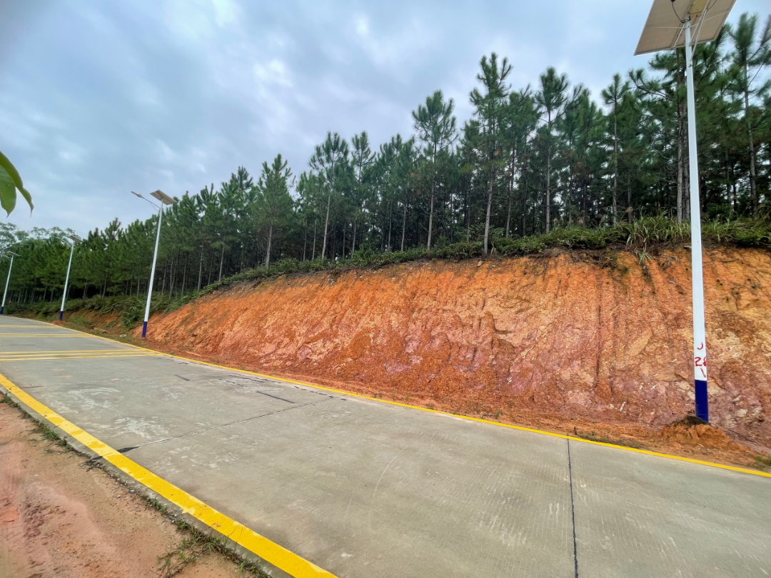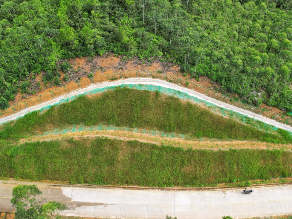 本次完成整治的明溪村1号、2号边坡位、东坑001号边坡,三座边坡均属土质高陡边坡,坡面裸露,局部受雨水冲刷已发生微型土体崩塌,且排水系统缺失,边坡稳定性较差,亟需开展综合整治。市交通运输局深汕管理局因地制宜对边坡坡度进行了减缓,清除不稳定土体,增加防护网,新建截水沟排水沟,并使用攀爬植物进行“复绿”,为道路景观再添一抹生机色彩。