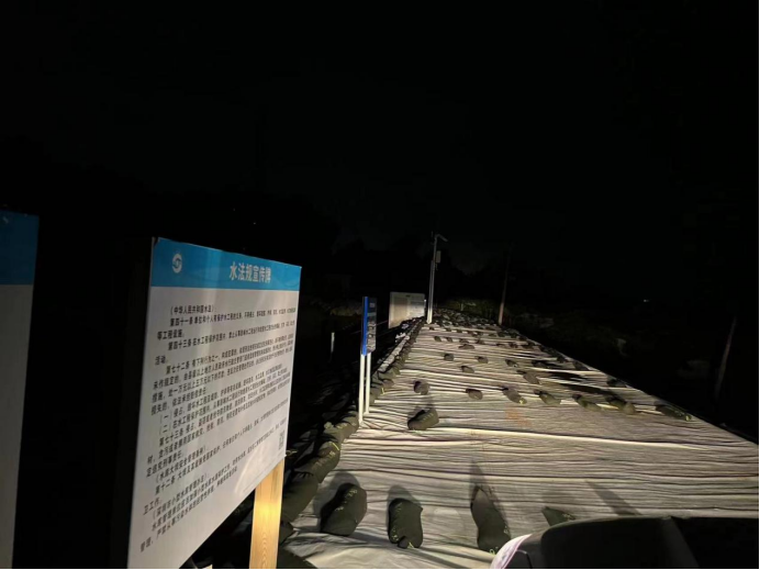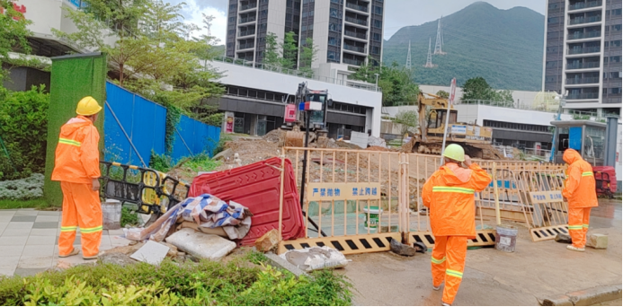 △交通部门人员发现围挡倒伏并扶正,对堵塞的雨水蓖及泄水孔、路障进行清理。