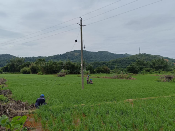 深汕供电局人员台风来临前检查杆塔拉力是否牢固,确保站得稳。